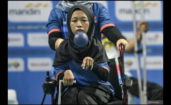 【美都新闻网 1 月 23 日电】 1月23日,在泰国国王陛下80岁生日纪念体育场,印尼地掷球运动员汉达亚尼在2025年东盟残疾人运动会上击败马来西亚选手安吉琳,为印尼代表团赢得首枚金牌。