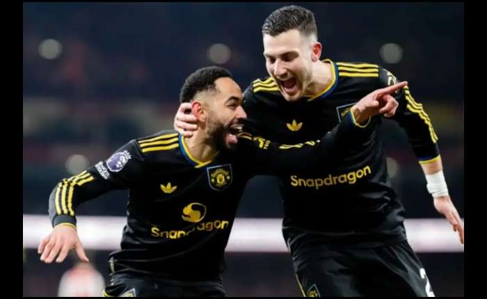 第86分钟,曼联再下一城!库尼亚前场左路拿球内切突施冷箭远射世界波破门,阿森纳2-3曼联。