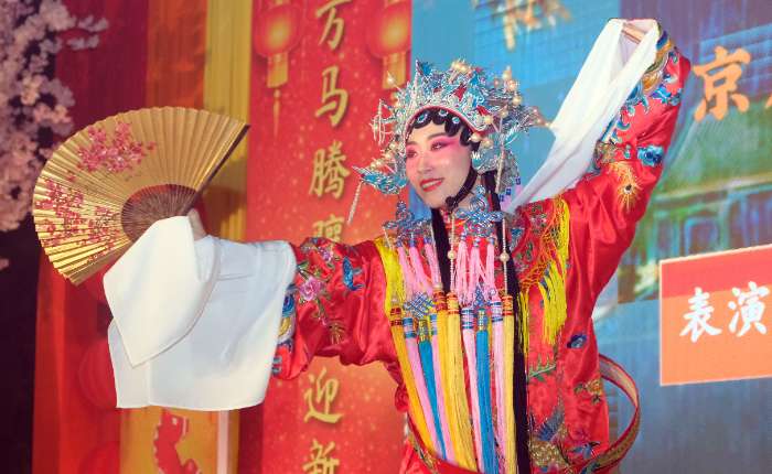 周二(2月10日),在巴厘登巴萨举行的春节招待会上,艺术家表演了中国传统舞蹈。此次活动由中华人民共和国驻登巴萨总领事馆举办,呈现了多种中国与印尼的特色艺术表演,共同庆祝孔历2577年春节,并致力于维护中国与巴厘之间的紧密友好关系。