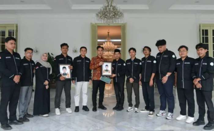 副总统吉布兰于2月23日在雅加达副总统府接见苏门答腊大学生兄弟会论坛(FUMAS)代表团。