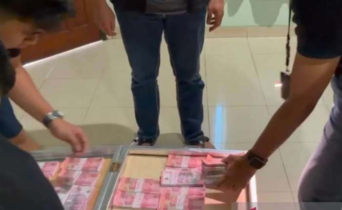 一批由雅加达大都会警署刑事调查局在茂物县克芒地区一家酒店房间内没收的假币证据。