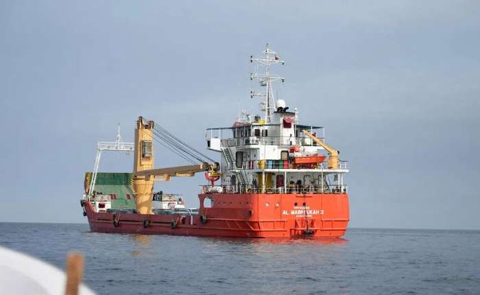2026年4月12日,一艘船只停泊在霍尔木兹海峡。(路透社)