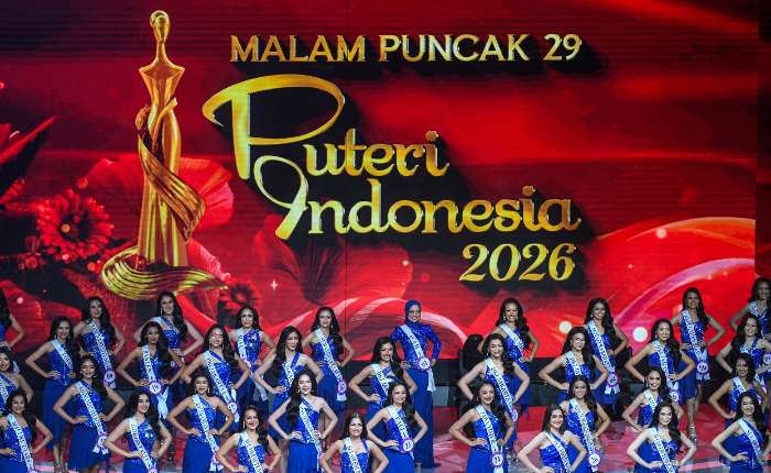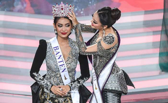2025年印尼小姐菲尔斯塔.尤菲.阿玛尔塔.普特里(右)为来自万丹的2026年印尼小姐阿格妮丝.阿迪亚.拉哈任(左)加冕,该仪式于周五(4月24日)在雅加达国际会议中心举行的2026年印尼小姐选美总决赛上举行。阿格妮丝.阿迪亚.拉哈任被加冕为2026年印尼小姐,获得第二名的“印尼环境小姐”称号由来自巴厘岛的维多利亚.蒂蒂萨里.科萨西埃普特里夺得,获得第三名的“印尼旅游小姐”称号由来自雅加达特区3的卡琳娜.毛迪.维多多夺得,第四名由来自雅加达特区2的吉塞拉.贝利西亚.阿尔玛.特萨洛尼卡获得,她荣获2026年“印尼教育小姐”称号。