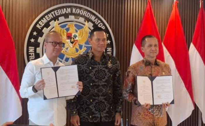 2025年9月26日,印尼移民部与工业部在雅加达签署谅解备忘录,基础设施与区域发展统筹部长阿古斯见证签署。
