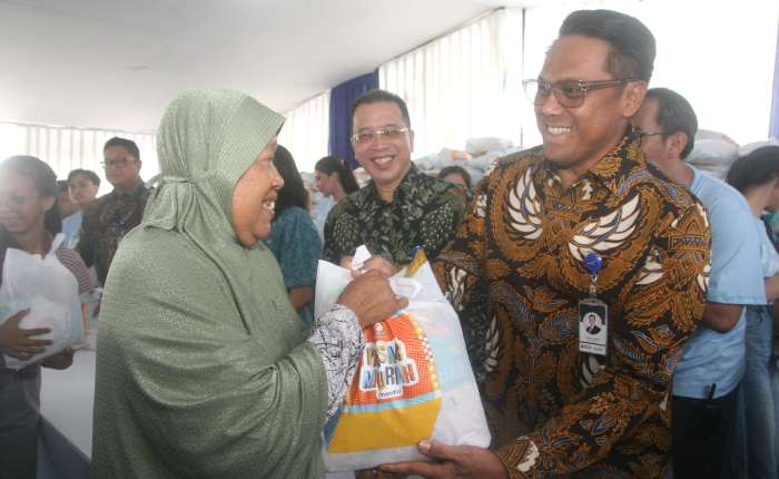 图为:万自立银行副总裁 Henry Panjaitan(2025年在临时股东大会上获任命,待通过金融服务管理局适格性测试后正式生效)(右一),在万自立银行运营总监 Timothy Utama(右二)陪同下,于10月2日(周四)在雅加达万自立银行企业大学的Wijaya Kusuma社区,象征性地向居民发放平价生活包。作为27周年庆活动的一部分,万自立银行(Bank Mandiri)在全国提供共计5万份生活包,居民仅需支付27,000盾即可领取。每份生活包包含5公斤大米、1升食用油和1公斤白糖,旨在帮助低收入家庭,并彰显公司持续强化协同、共促国家发展的承诺。(商报/Hermawan摄)