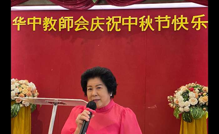 华中校友会主席黄珍云,也在宴会上致辞。她说,很高兴今天能参加老师们的中秋联欢,记得我每一年都参加老师们的聚餐联欢,希望年年都能参加,,我们有今天都离不开老师们的谆谆教导,细心地让我们健康成人,如何办事,让我们立足于社会,老师们,您们辛苦了!时间不知不觉,又到了金秋佳节,希望老师们生活越来越好,有伴、有望、无灾、无难,未来的日子平安、健康!