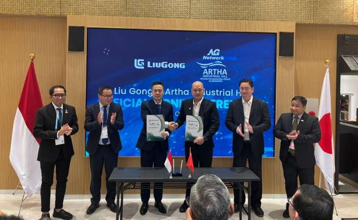 柳工印尼公司通过PT LiuGong Machinery Manufacturing Indonesia为在西加拉璜的Artha Industrial Hill工业区建设一座重型机械工厂举行签署仪式。