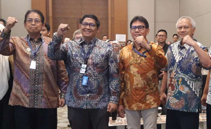 2025年第40届印尼国际贸易博览会(Trade Expo Indonesia,简称TEI)的议程之一是举办出口加强商业论坛,阿斯特拉基金会参加了TEI展会,该展会是国际商业参与者和买家建立贸易伙伴关系、拓展市场的最大企业对企业(B2B)活动。贸易部正致力于通过TEI,实现交易总额达到165亿美元,约合273.54万亿盾(按1美元兑16,578盾计算),以进一步促进出口增长、增强投资吸引力并推动国家经济发展。图为左至右 : 周五(10月17日),印尼工商会出口发展事务协调副主席Juan Permata Adoe、工业部出口和贸易服务人力资源开发中心主任Sugih Rahmansyah、YDBA理事长Rahmat Samulo,和咨询委员会Tony Sumartono在万丹省丹格朗市ICE BSD出席印尼国际贸易博览会商业论坛后合照。(商报//Max Manuhutu摄)