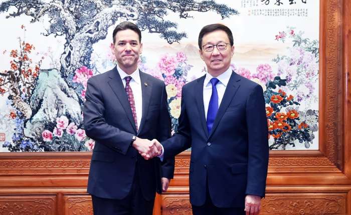 韩正表示,今年以来,习近平主席同特朗普总统三次通话,达成一系列重要共识。中美两国间拥有广泛共同利益和广阔合作空间,可以成为也应当成为伙伴和朋友。希望美方同中方相向而行,相互尊重、和平共处、合作共赢,共同找到新时期两个大国正确相处之道,造福两国,惠及世界。俄勒冈州长期同中国保持友好合作关系,希望瓦格纳参议长和各位议员继续推动双方加强沟通交流,深化民间友好,为中美地方合作发挥示范作用。