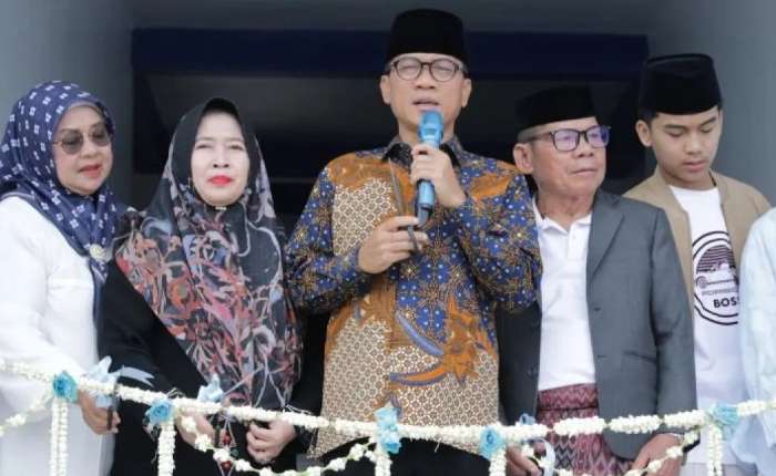 乡村、贫困地区发展部长Yandri Susanto在万丹省西冷市Bai Mahdi Sholeh Ma'mun伊斯兰习经院,为男生宿舍举行落成典礼,该宿舍被命名为Al-Kautsar大楼。