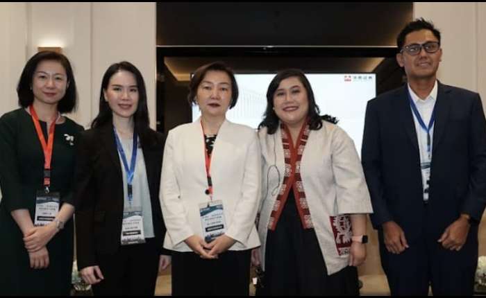 图为:(从左至右)华泰证券营业部董事总经理林佳玲、BNI Sekuritas代理总裁Vera Ongyono、华泰证券机构业务委员会主席梁红、印尼国家银行(BNI)首席经济学家办公室副总裁Agnes HT Samosir、BNI Sekuritas投资银行高级副总裁Ikhsan Ramdan,在近日于雅加达举行的印尼—中国战略投资论坛期间合影。该论坛由PT BNI Sekuritas主办,旨在推动包容性与可持续经济增长,探讨长期发展投资机遇,并加强两国在金融与资本市场领域的合作。(商报/Hermawan摄)