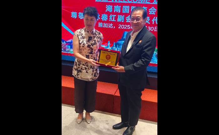 海南省贸促会二级巡视员、海南国际商会副会长林春红致辞,感谢江淼成副总主席等诸理事的热情接待。她说,此次访问印尼,旨在参加10月29日至31日,在雅加达展览中心 (JIExpo)召开的2025中国(印尼)国际电商产业博览会,并藉此机会走访印尼中华总商会,以增进交流,共话发展。