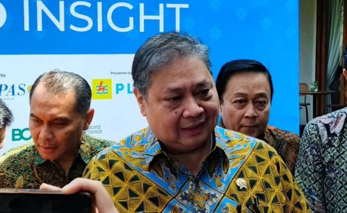 2025年11月4日,印尼经济统筹部长艾尔朗卡在雅加达出席CEO洞察活动后接受了记者采访。