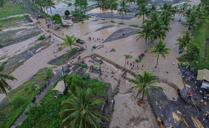 暴雨侵袭塞梅鲁火山山顶,引发火山泥流,导致塞梅鲁河流域沿线水量增加,致使连接Pasirian镇区和Tempursari镇区的溢流桥严重损坏,现已无法通行两轮或四轮车辆。