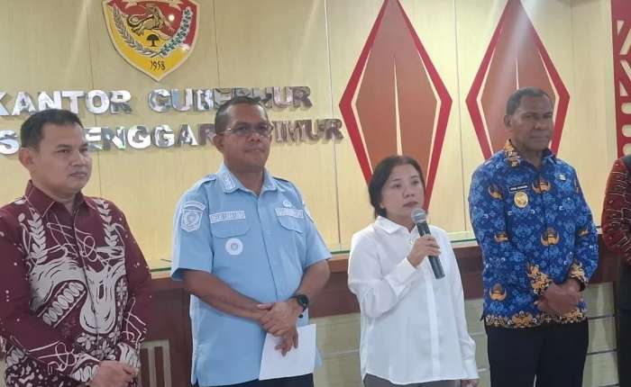 我国文化部外交、推广与文化合作总司长Endah T.D Retnoastuti在努沙登加拉省省长和副省长陪同下,就古邦IPACS事宜向记者作出说明。