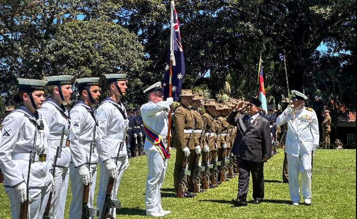 澳总督莫斯廷为普拉博沃总统举行欢迎仪式