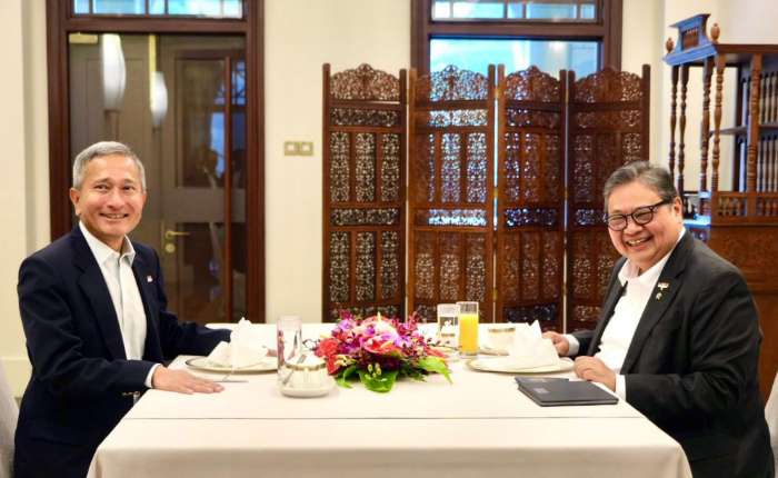 2025年11月18日,印尼经济统筹部长艾尔朗卡与新加坡外交部长维文举行双边会谈。