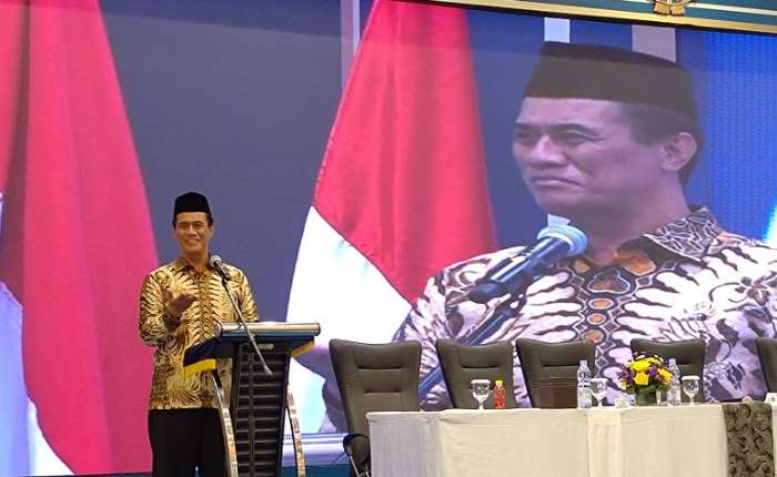 2025年11 月 21 日,农业部长安迪·安姆兰·苏莱曼在雅加达出席 2025 年 MUI 第十一届全国代表大会第四次全体会议上发言。