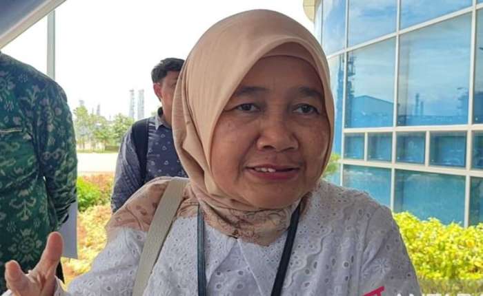2025年11 月 21 日,工业部化工上游产业司司长维维克·普吉亚斯图蒂 (Wiwik Pudjiastuti)在万丹省芝勒贡市乐天化学印尼公司调研时接受媒体采访。