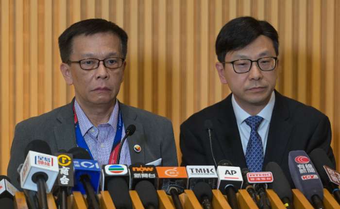 12月2日,香港特区政府劳工及福利局局长孙玉菡会见传媒时表示,有235名外佣在大埔宏福苑工作,其中10人在大火中丧生。图为孙玉菡(右)、菲律宾移工部部长Hans Leo J.Cacdac会见传媒。(中新社)