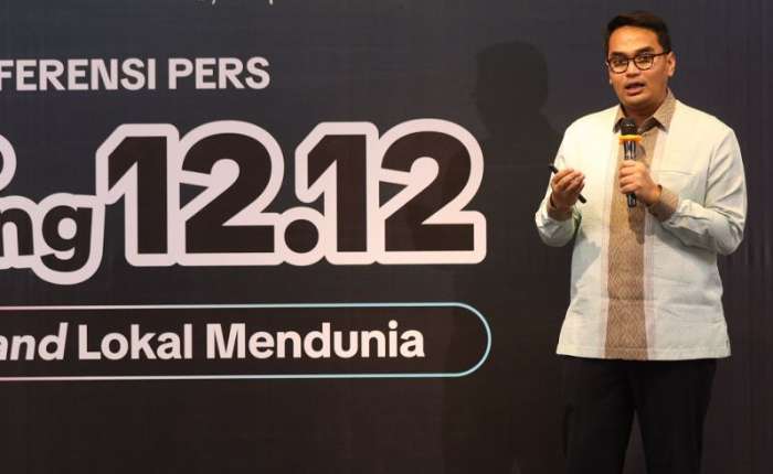 2025 年 12 月 3 日,Tokopedia 与 TikTok Shop 印尼电商业务公共政策与政府关系负责人希尔米·阿德里安托在雅加达举行的“12.12 震撼促销”活动发布会上致辞。