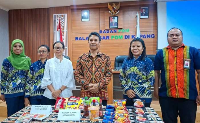 东努沙登加拉省食品与药物管理局(BBPOM)在库邦市展示了一至三期食品强化监管中发现的数批不合规食品。