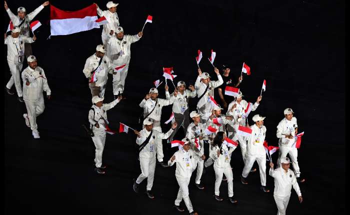 2025年12月20日(星期六),在泰国曼谷拉贾曼加拉体育场举行的2025年东南亚运动会闭幕式上,印尼运动员和官员参加了入场仪式。印尼队在东南亚运动会中获得亚军,共获得91枚金牌、111枚银牌和131枚铜牌。