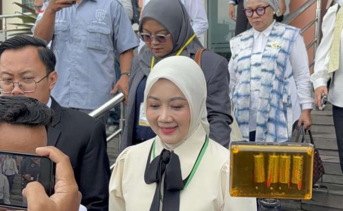 周三(12月31日),国会议员阿塔利亚.帕拉塔娅在万隆宗教法庭出席针对西爪哇省前省长利德万.卡米尔离婚诉讼后续庭审。