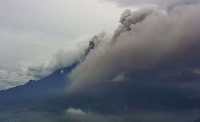 塞梅鲁火山再次喷发4公里长热火山云