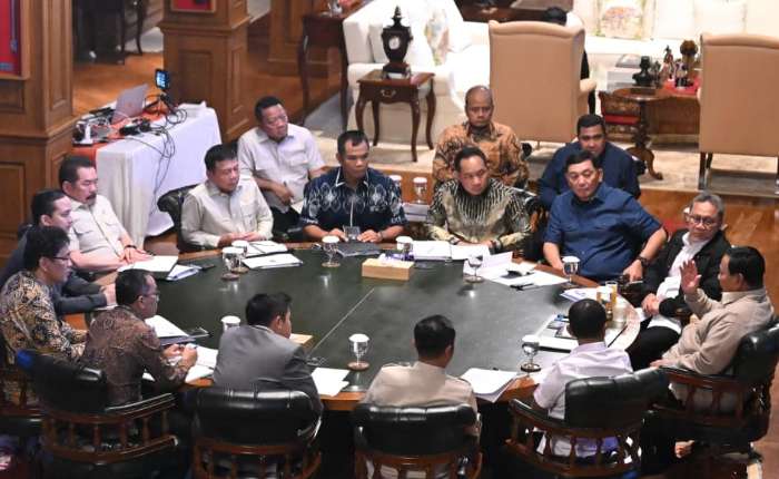 【本报讯】普拉博沃·苏比安托总统于1月25日(周日)直接在西爪哇省茂物县汉巴朗的私人宅邸主持召开局部内阁会议,与多位部长和国家官员共同检查国家战略计划的执行情况。
