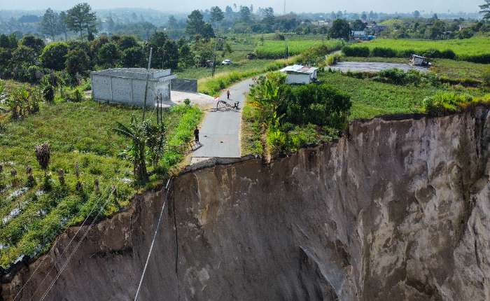 周五(1月30日),印尼亚齐特区亚齐中部县Ketol镇Pondok Balik村,航拍显示当地居民位于跨区公路沿线的种植园发生地面塌陷。持续数年的地面塌陷现象近两个月持续扩大,导致亚齐中部县与贝内尔梅里亚(Bener Meriah)县之间的跨县公路中断。