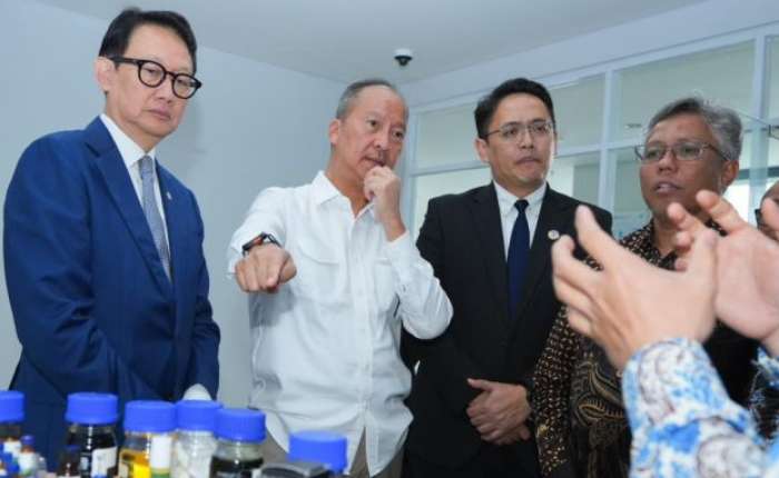 2026年1月29日,印尼业部长阿古斯(左二)在万隆举行的“2026年印尼半导体峰会”上,视察了芯片设计及相关半导体配套组件的研发设施与成果,并与半导体行业从业者和专家进行交流,旨在加强国家半导体生态系统建设。