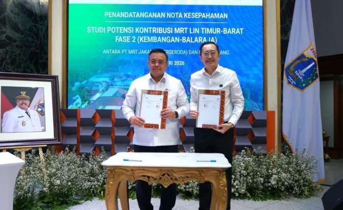 日前,MRT 雅加达业务发展总监 Farchad Mahfud 与 Summarecon Serpong 执行董事 Albert Luhur 和 Summarecon Tangerang 执行董事 Hindarko Hasan 签署了谅解备忘录 (MoU),标志着该协议的签订,由雅加达省长Pramono Anung见证该谅解备忘录的签署。