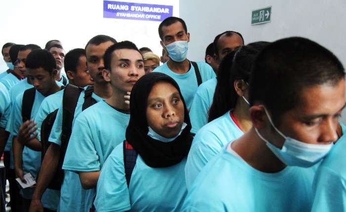 180名印尼移民工人从马来西亚被遣返抵达杜迈
