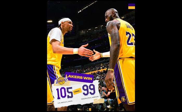 湖人队的勒布朗得到20分、7个篮板和10次助攻,八村塁得到18分,里夫斯得到16分、5个篮板和8次助攻,斯马特得到15分和4次助攻,范德比尔特得到13分和8个篮板,肯纳德得到10分。勇士队的穆迪得到25分和4个篮板,桑托斯得到15分和8个篮板,波杰姆斯基得到14分和6个篮板,斯宾塞得到14分、5个篮板和7次助攻,佩顿得到13分和5个篮板,格林得到9分、4个篮板和6次助攻。