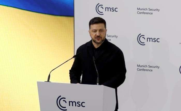2月14日,在德国慕尼黑,乌克兰总统泽连斯基在慕尼黑安全会议上发表讲话。