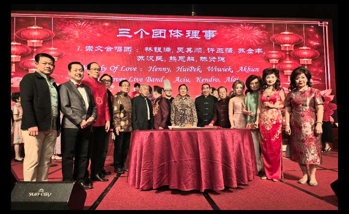 【本报周孙毅报道】3月1日,崇文校友会合唱团、Melody Karaoke Group、Clover Live Band三团体假太阳城国际酒楼宴会厅联合举行新春团拜暨元宵节庆典,欢庆新春与元宵佳节。现场布置喜庆典雅,灯光璀璨,嘉宾与观众踊跃出席,场面热烈温馨。