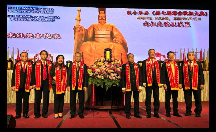 【本报周孙毅报道】为弘扬中华民族“慎终追远、尊宗敬祖”的传统美德,由印华百家姓总会(PSMTI)姓氏部与雅加达印华百家姓协会联合主办的《第七届尊宗敬祖大典》,于4月12日上午在雅加达太阳城国际大酒楼隆重举行。来自印尼各地宗亲代表、社团领袖及社会贤达逾千人齐聚一堂,共襄盛举,场面庄严隆重。