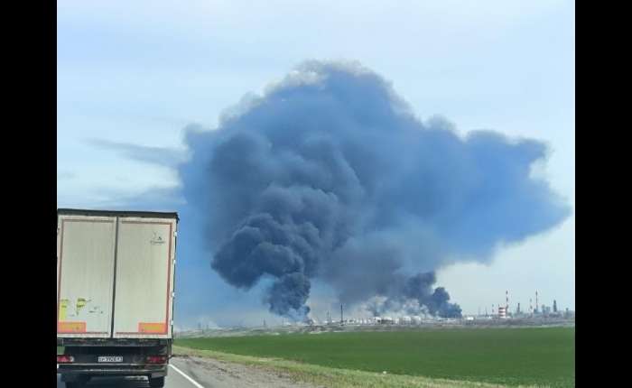 乌克兰袭击了位于俄罗斯萨马拉州的诺沃库比雪夫斯克和瑟兹兰炼油厂。(图取自X/@LXSummer1)