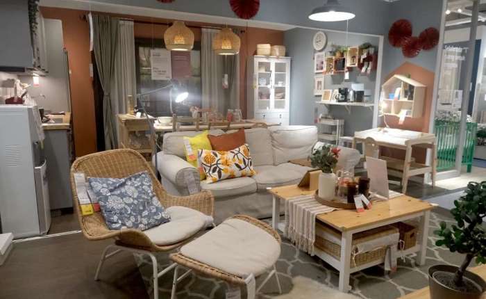 宜家展示的藤制和木制家具。